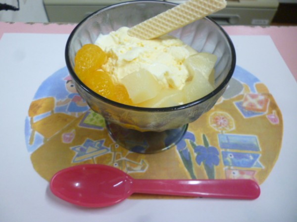 アイスクリームにフルーツをのせて!召し上がれ❣