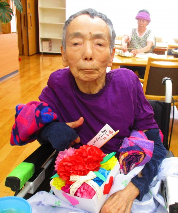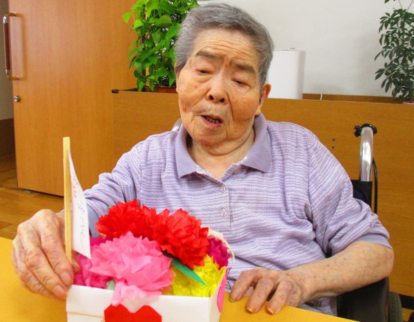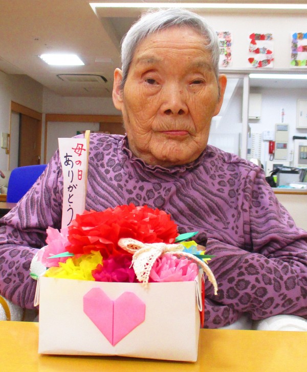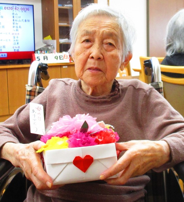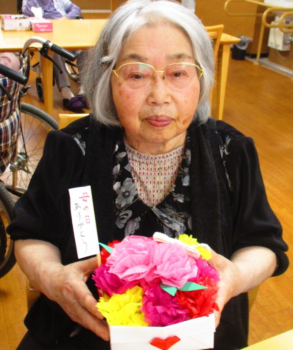 そんな介護付有料老人ホームみんなの家・南中野の【母の日】には女性のご入居者様へ感謝の気持ちをお届けしております(*ノωノ)