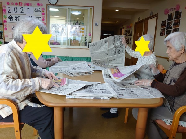 毎日何かと新聞を使うので、今回3階の皆さんが新聞をたたんでくださいました(人*´∀`)。*゚+