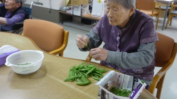 今回は、皆で絹さやえんどうのスジとりを行った様子をお伝え致します。