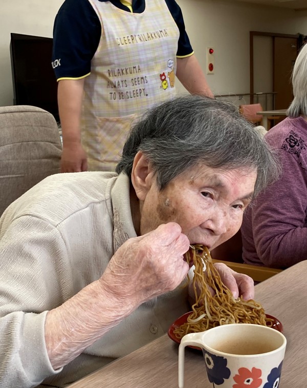 本日のおやつは焼きそば!皆様普段とは違う食欲です( *´艸`)