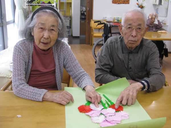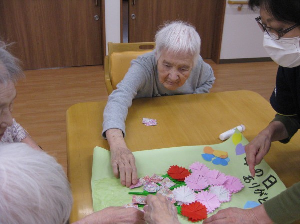 今回は、母の日にちなんでカーネーションの貼り絵作りをしました(^^)/