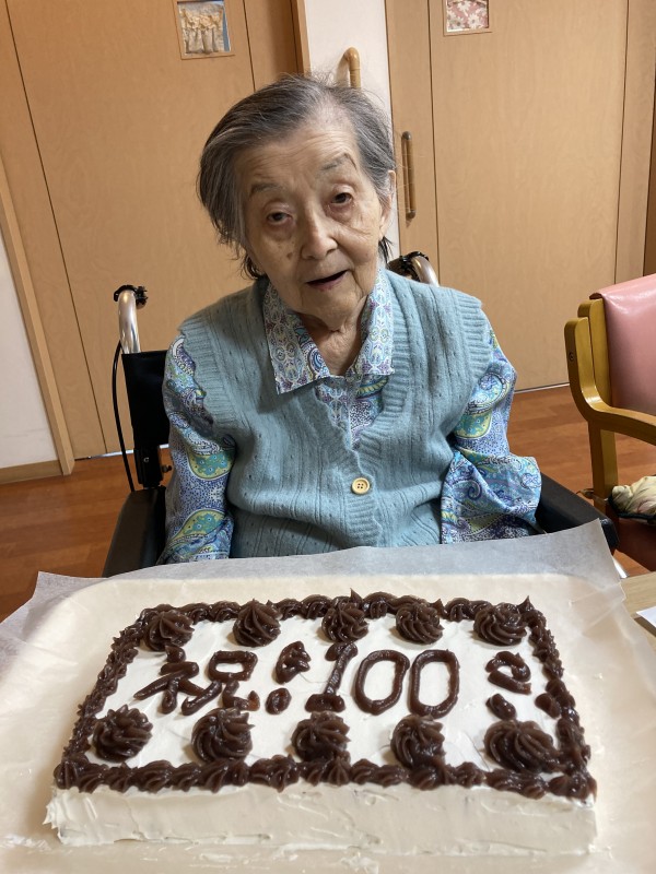 おめでたいことにH様が100歳のお誕生日を迎えられたのでみんなでお祝いをしました。
