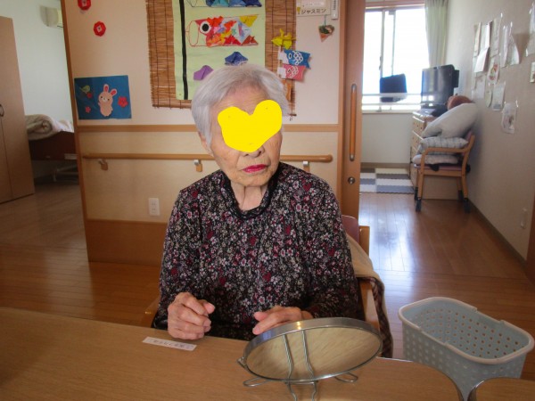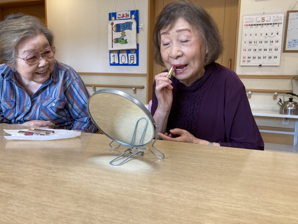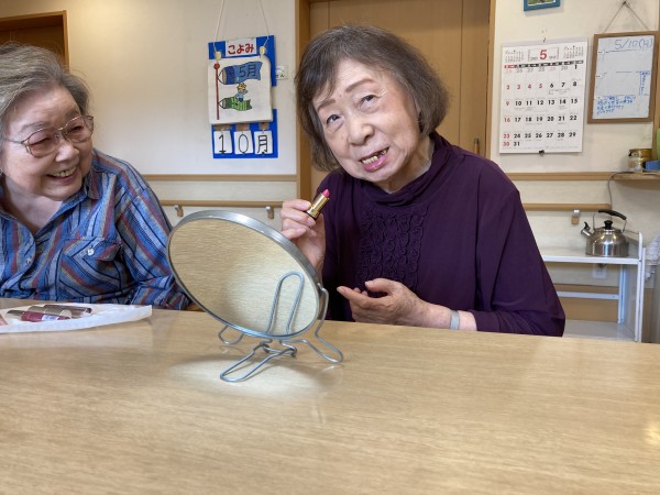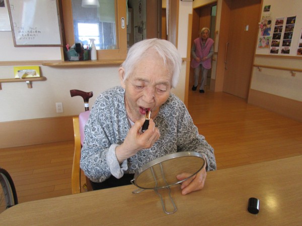 さて、今日は女性のご利用者様に口紅を塗って気分転換をしていただきました(^^)