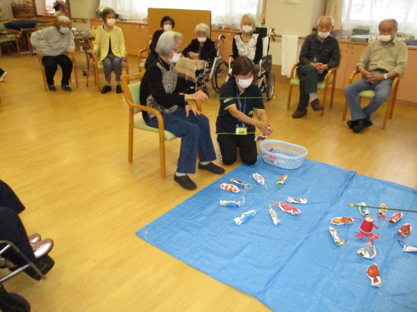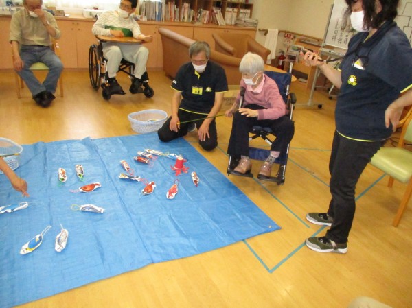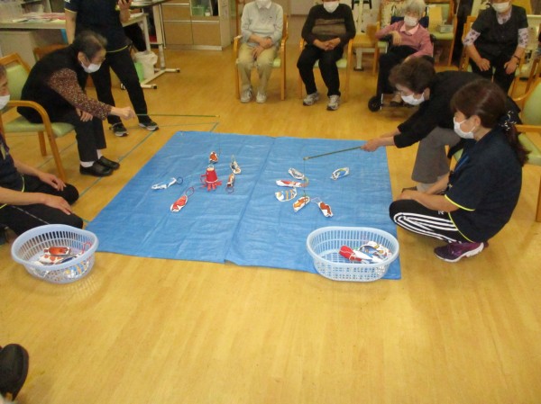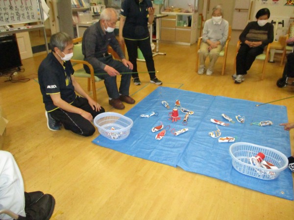 今日の運動レクレーションは『魚釣りゲーム』です。