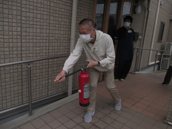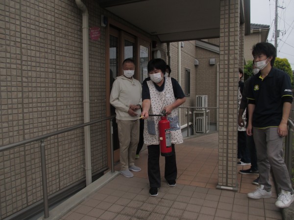 今回は火災を想定しての避難訓練と消火訓練を行いました。
