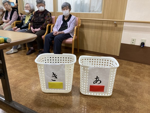 赤いボールを「あ」のかごに、黄色いボールを「き」のかごに入れていくゲームです!!