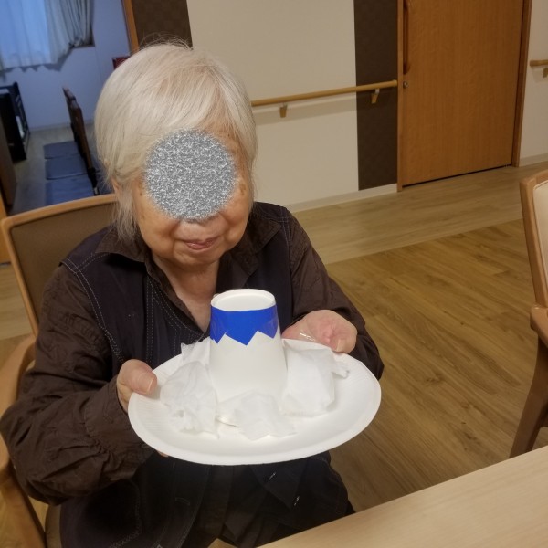 紙コップと折り紙、脱脂綿で富士山作成しましたよ