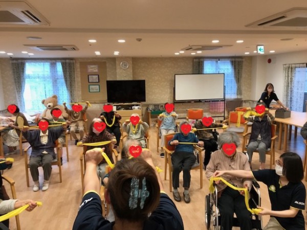 アミカの郷成増でも、セラバンドを使った運動を1年ほど前から継続的に行っています。