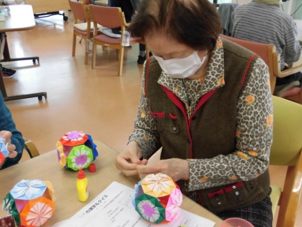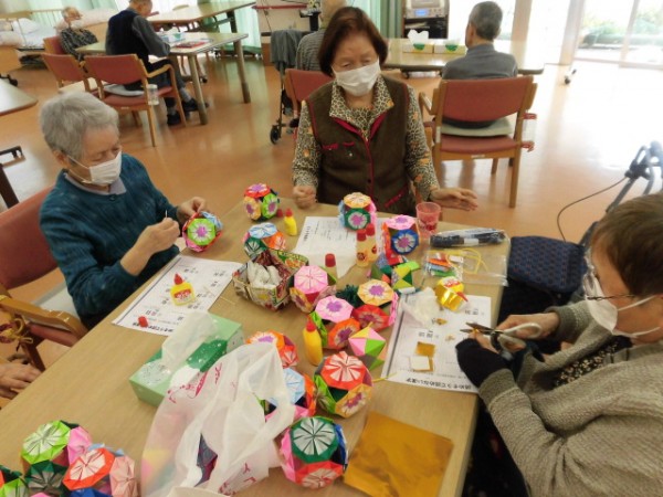 お話によると「くす玉」作りとの事です。これはまた可愛いくす玉ですねー?