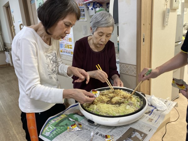 2階のご入居者様もソースのいい匂いに「何ができるの?」と楽しみなご様子です。