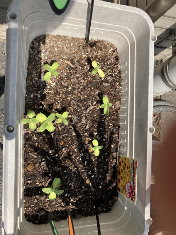 5月初めに植えた、ヒマワリとマリーゴールドの芽が大きくなってきました!