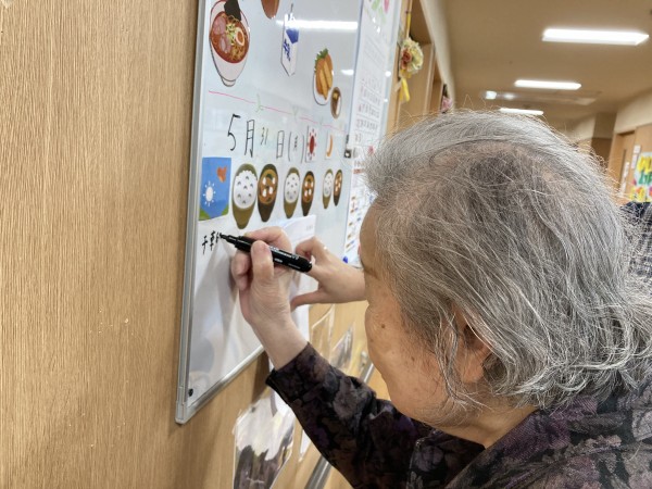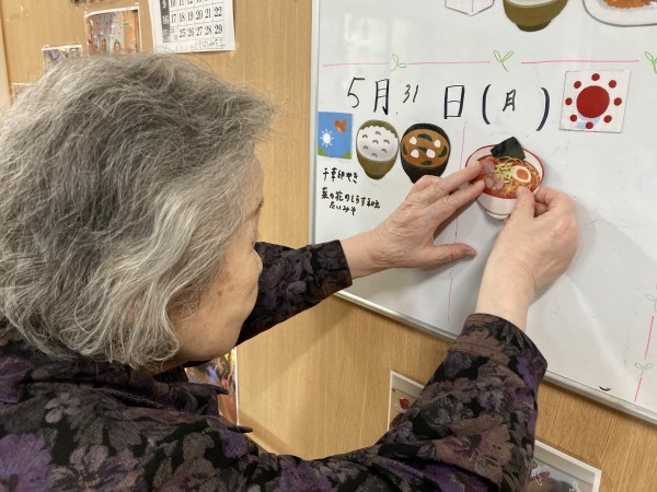 こんな感じで、交替で献立表をご利用者様に書いて頂くことが日課となっております♪