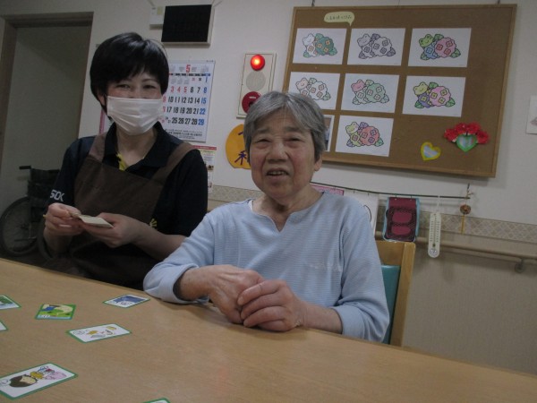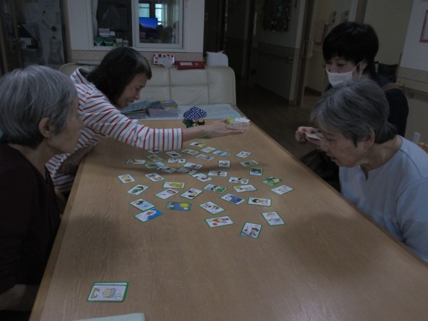 ことわざカルタでは、続きをご入居者様にも読みあげていただき脳トレも兼ねて楽しまれました。