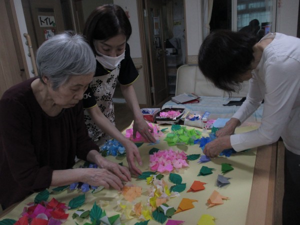 1階の壁飾りとはまた違ったあじさいの花が完成しました❣