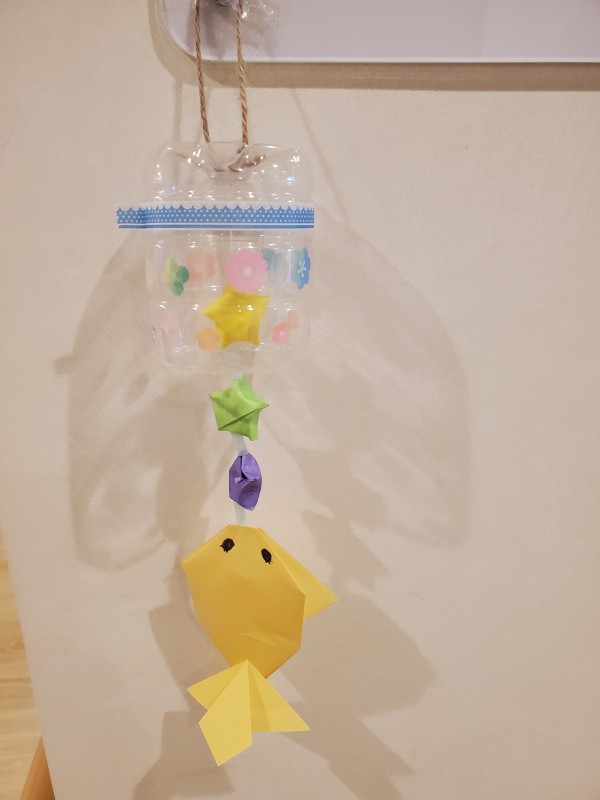職員のアイディアでペットボトルを使った風鈴を作りました☆☆