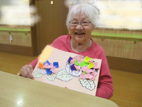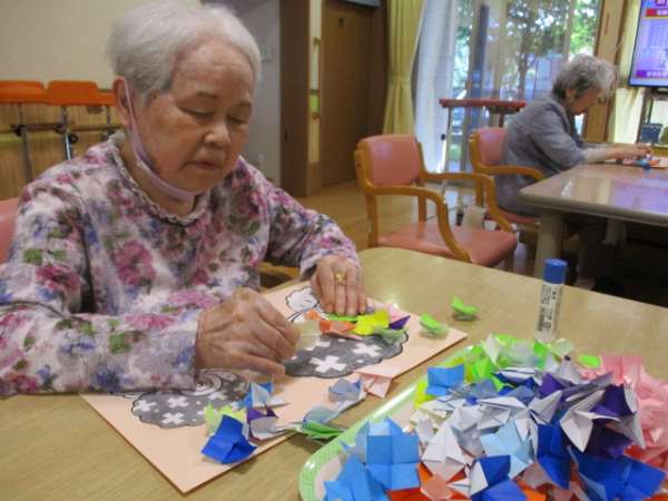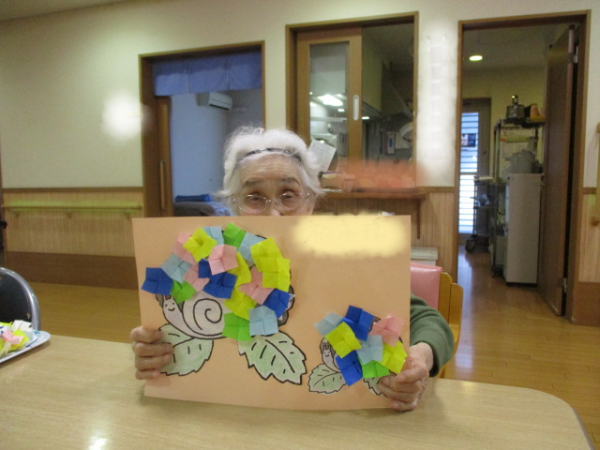 GH上瀬谷では折り紙で「紫陽花」を作成してみました(^_-)-☆