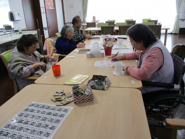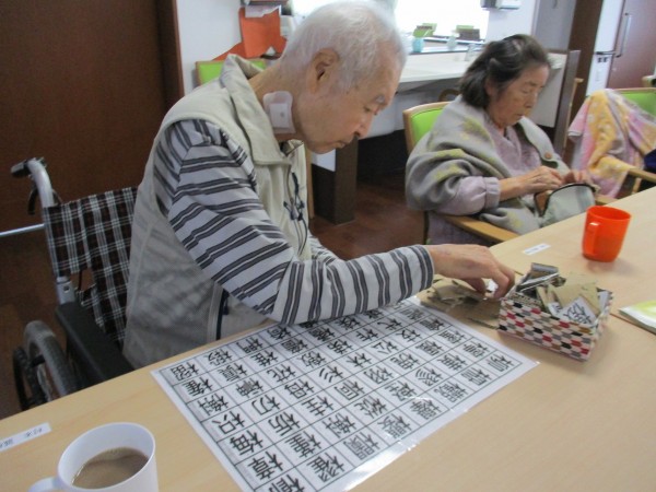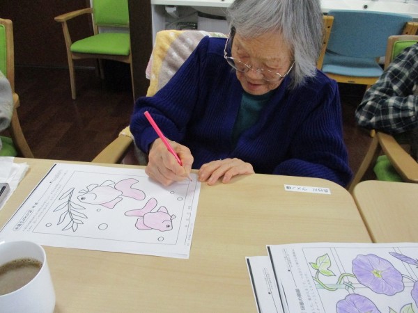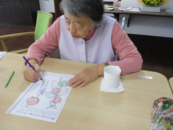 本日3階では、お風呂の順番まで【塗り絵】や【漢字パズル】を皆様されていました(^^)