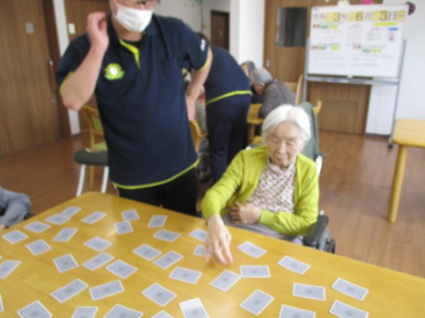 こんにちは!グループホームみんなの家・あきがせの介護ブログです。よろしくお願いいたします。2Fでトランプ(神経衰弱)で遊びました。盛り上がり楽しまれていました。