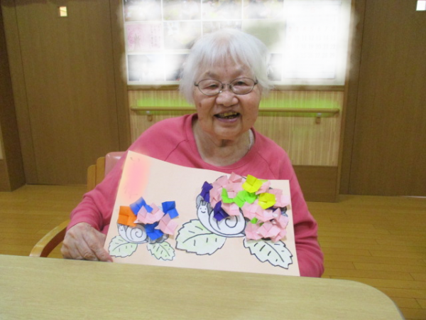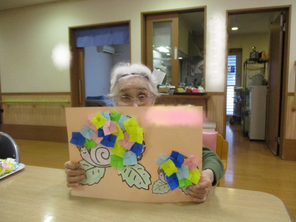 「ちょうどやろうと思ってた所です!!」という事でみんなであじさいの花を作ってみました\(^o^)/