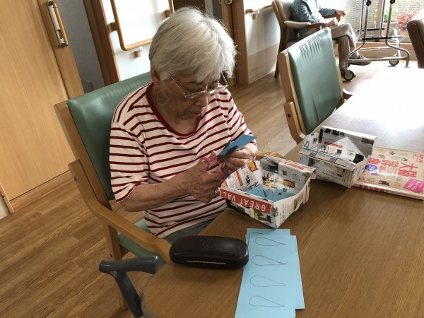 そんな梅雨にぴったりな飾りをご入居者さまが作ってくださいました!