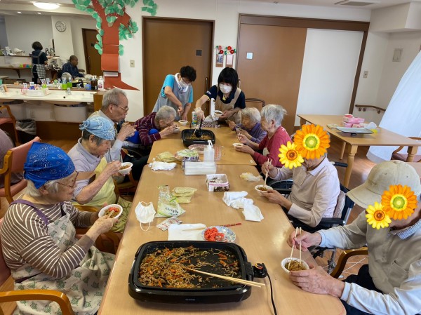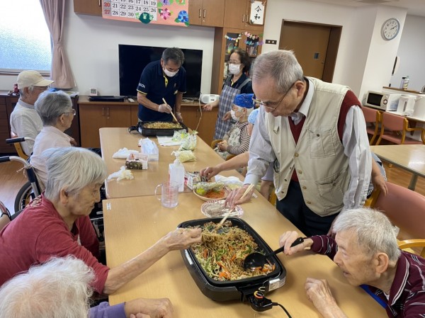 『子供によく作ったもんだよ』と、男性入居者様も、自ら手を動かし慣れた手つきで麺を炒めてくださいました。頼もしい!
