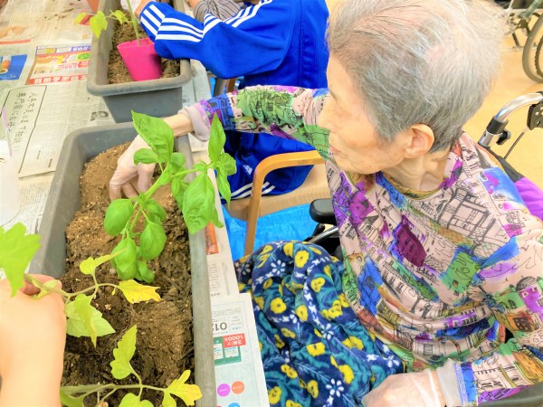皆様、慣れた手つきで土を掘り苗を植えられました(∩´∀`)∩