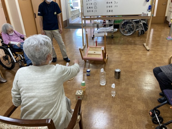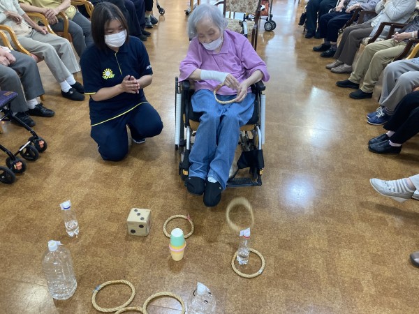 今日のレクリエーションはその名も「ハイパー輪投げ!」