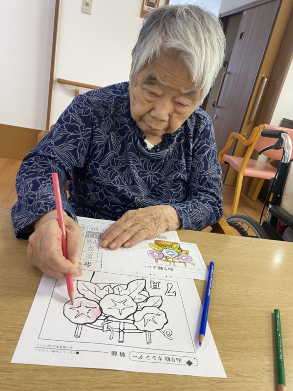皆様『来月のカレンダーの塗り絵』に集中して取り組まれていました(^。^)