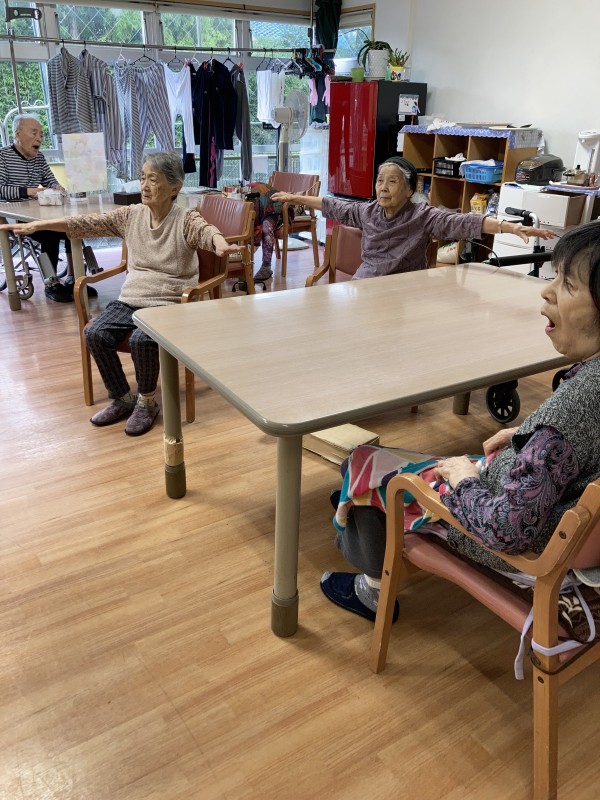 今日は1階のご利用者様の朝の体操風景のお届けです。