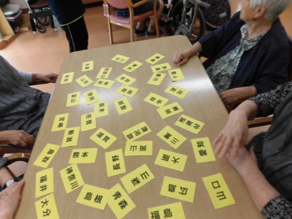 さてそんな本日は、今回のレクで行いました「都道府県カルタ」の風景をご紹介していきたいと思います♪