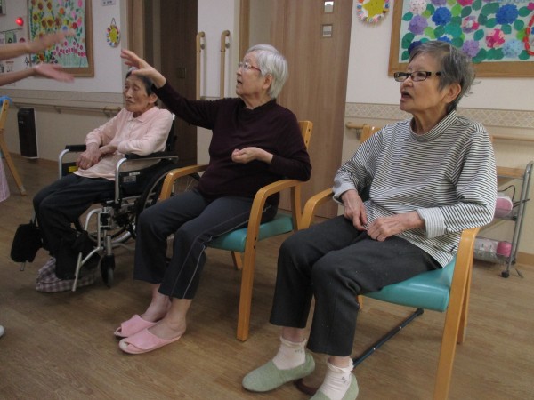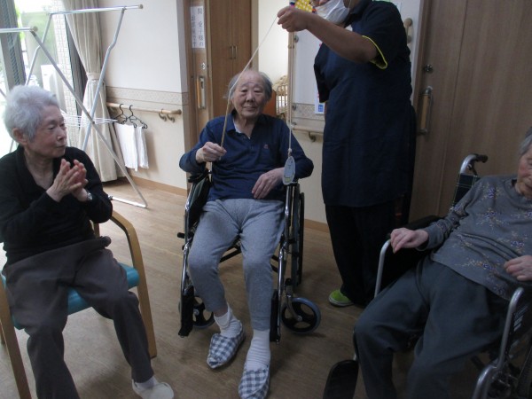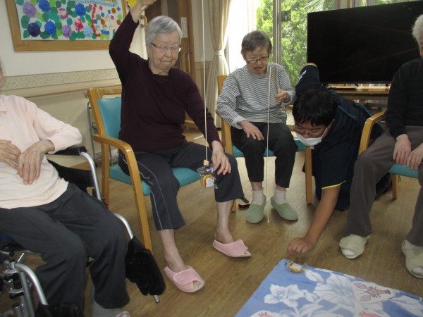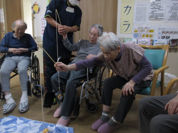 ご入居者様には歌、ボール遊び、魚釣りゲームに参加していただきました。