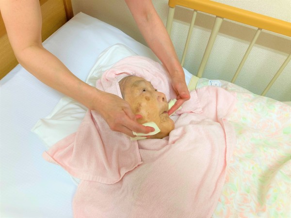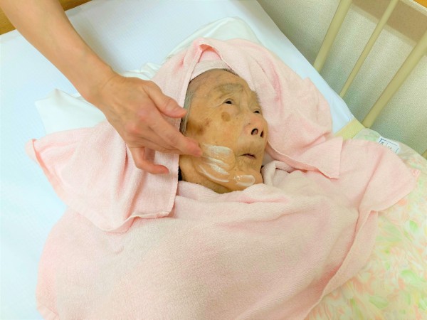 シニアセラピーのフェイスマッサージの光景をお送りいたします。(*´Д`)