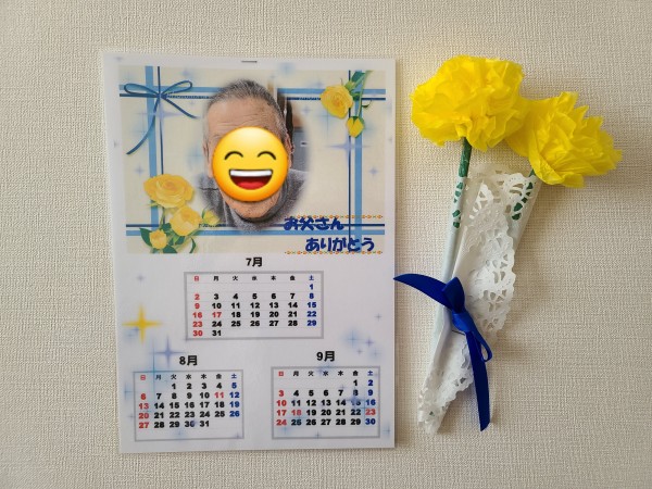 写真入りのカレンダーと手作りのカーネーションの花束をプレゼントしました( *´艸`)♪