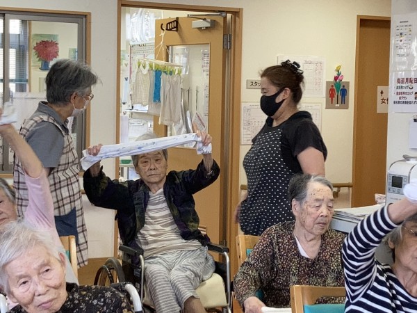 体操教室が行われました!今回はタオル体操!フェイスタオル一枚でできる簡単な体操です(*^-^*)
