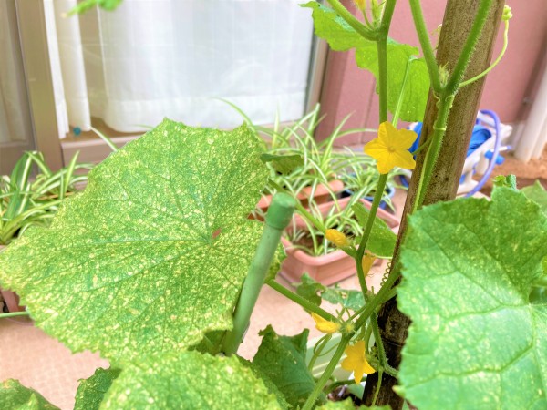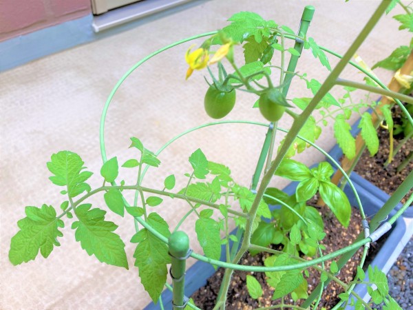 きゅうりの花が咲き、ミニトマトも実が付きました(*´ω`*)