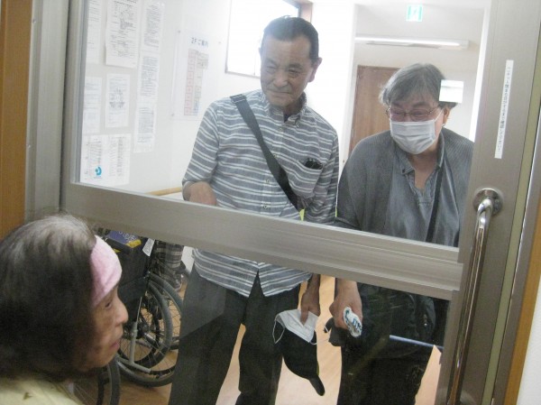 嬉しい・・  弟さんご夫婦が面会に来られました。一番会いたかった人と涙ぐまれていました。硝子越しでも顔を見れるのは良いものですね!!