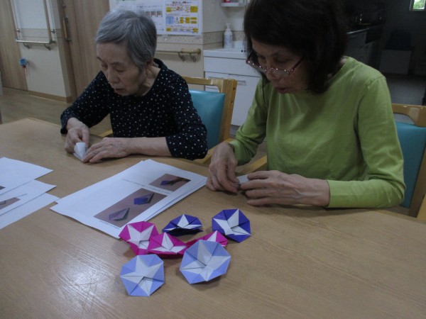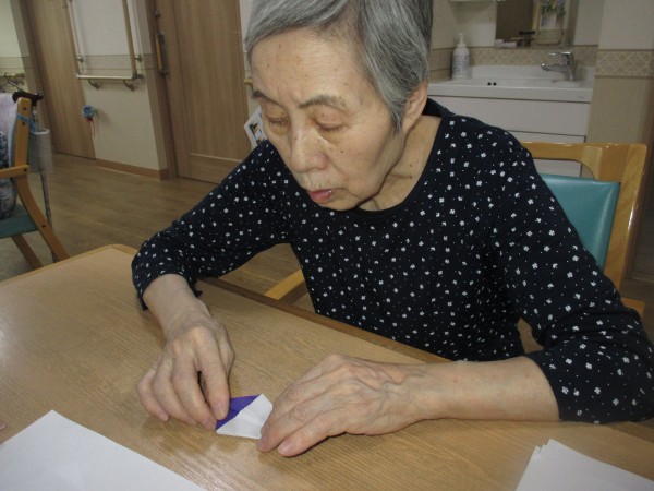 職員に折り方を教わりながら、作って頂いています。