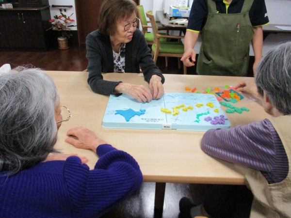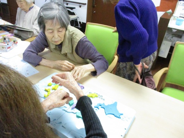テーブルの上に広げ楽しそうに日本地図のパズルをされていました\(^o^)/