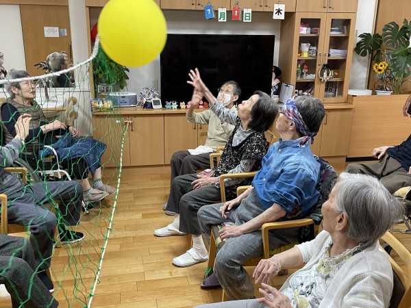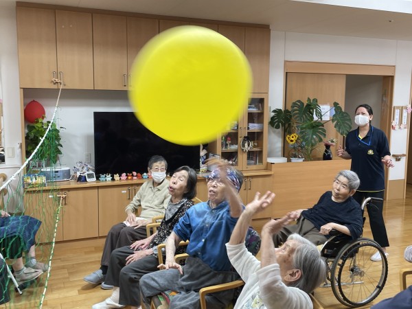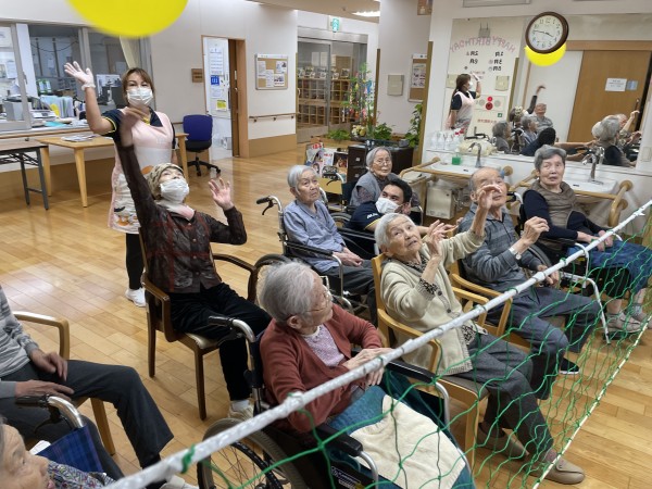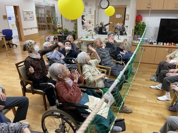 バックにも職員が待機している為、基本的に全員が風船に触れるようになっています。