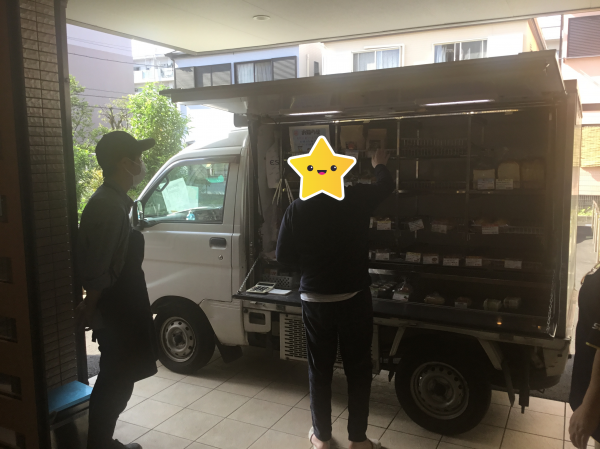 魅惑のパン屋さんが来ると、大行列で皆様楽しそうに好きなパンを選ばれております。