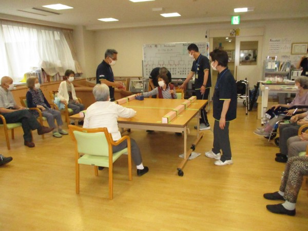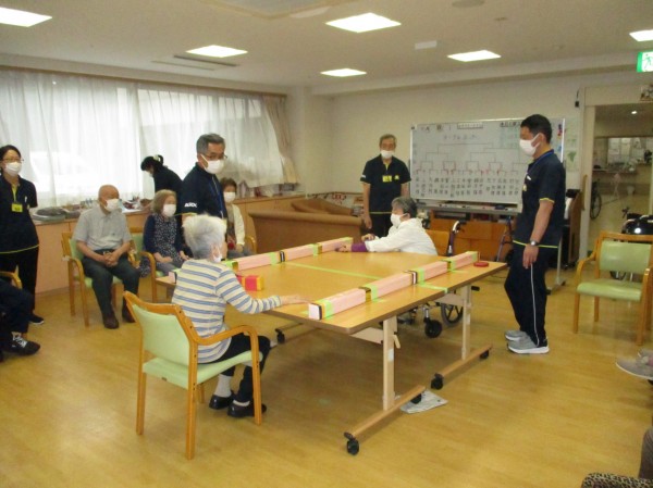 今日の運動レクレーションは『テーブルホッケー』です!