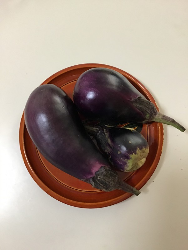 かたくりの里中村橋の庭で育った茄子を収穫いたしました。