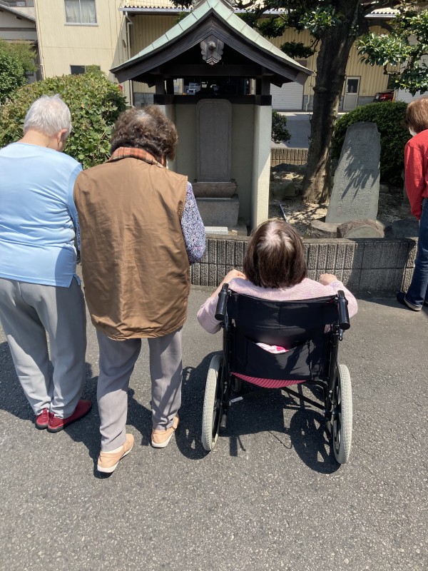 オーナー様自宅のお庭を散策し,お社に手を合わせてお願い事をしてホームに戻りました。