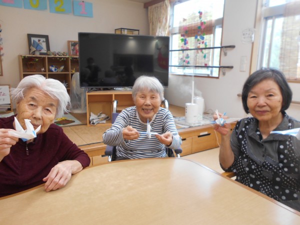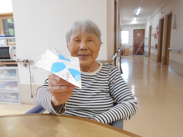 今日は午後のひと時、皆さんと紙飛行機や折鶴を