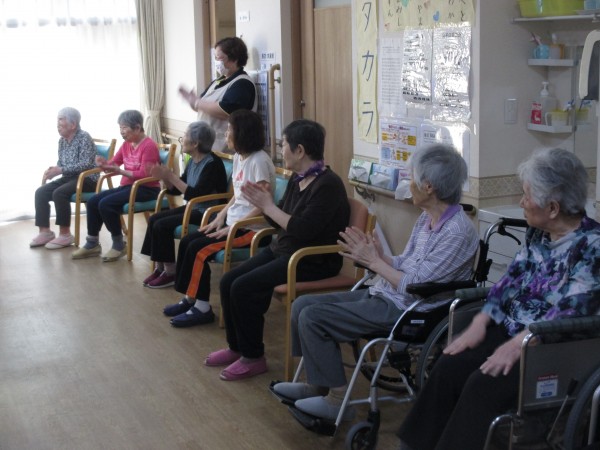各フロアのご入居者様で歌の発表会と手遊び歌