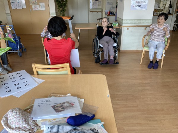 皆さん、声をだしながら、手や足の運動をおこない、最初出来てなかった