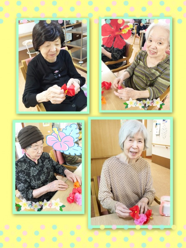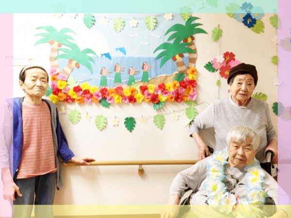 みんなの家大宮三橋の4階の皆様はこの夏はハワイアンリゾートにいる気分でお過ごし頂いております。