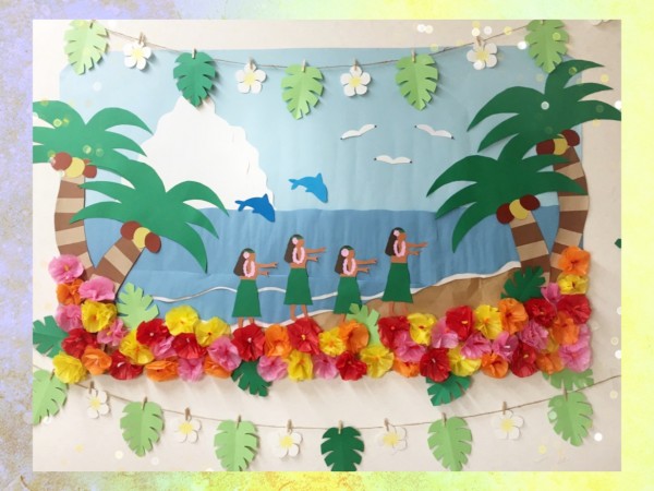 と、まるでここは常夏の国ハワイ?と錯覚してしまう様なN職員の力作の素敵な夏壁紙が完成しました。