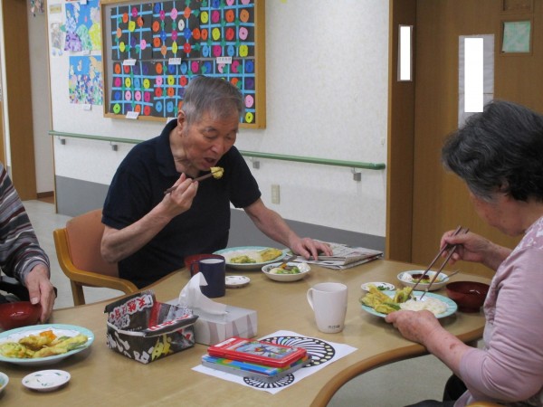 とっても美味しいよ!と嬉しい一言!こちらの利用者様は天ぷらをガブリ!